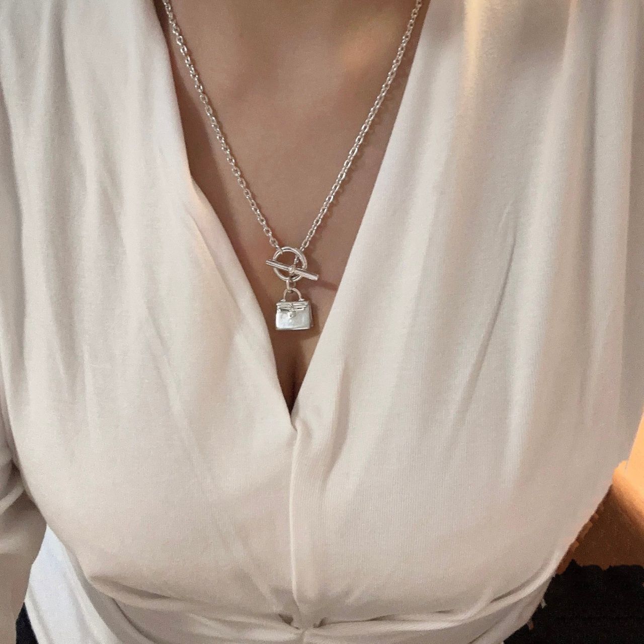 采用纯银材质精心打造,项链主体为精致的链条设计,搭配小巧可爱的包包吊坠,整体造型简约而不失时尚感。吊坠部分以经典的手提包形状呈现,细节处彰显出设计师的独特匠心。无论是日常穿搭还是特别场合,都能为您的装扮增添一抹亮点。