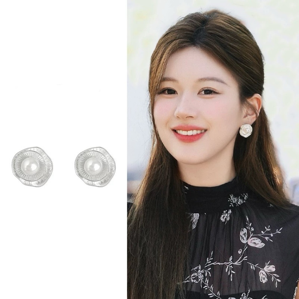 采用新中式设计风格,银色哑光肌理与中央的珍珠相得益彰,展现出一种古典与现代结合的独特美感。耳钉的设计简洁大方,适合各种场合佩戴。